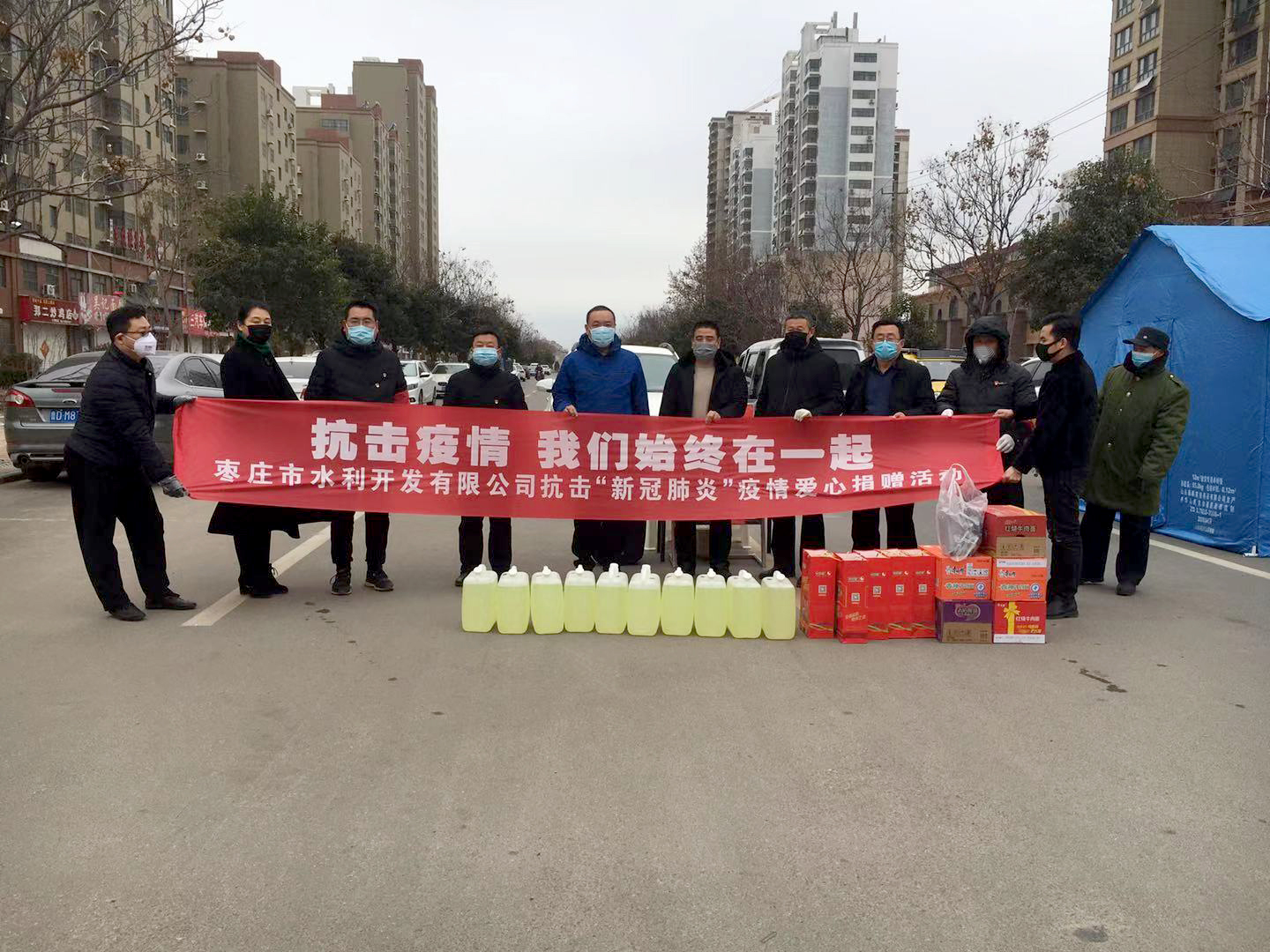 新型冠狀病毒肺炎疫情,牽動著國人的心。在此嚴峻時刻,2020年2月5日上午,棗莊市水利開發(fā)有限公司執(zhí)行董事兼總經理岳磊,黨支部委員、副總經理劉偉東,副總經理鄭濟營及工會主席、副總經理郝玉同等一行前往棗莊市中邵莊社區(qū)組織開展了抗擊“新冠肺炎”疫情獻愛心捐贈活動。為開展新型冠狀病毒防護工作增添了一份安全保障,為抗擊疫情貢獻了一份力量。